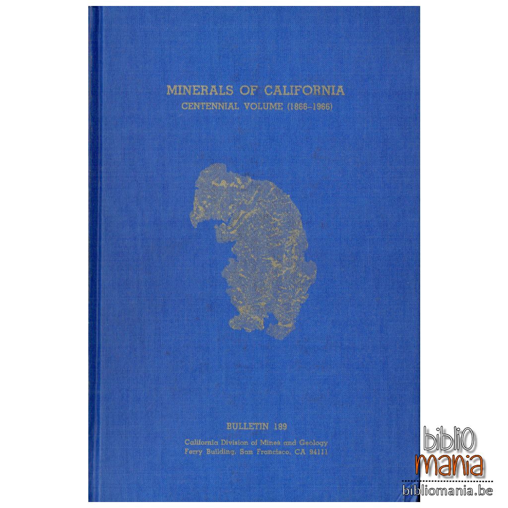 Since 1914. the California Division of Mines and Geology has followed the policy of publishing, at approximately ten-year intervals, catalogs with commentaries on the minerals of California. This volume commemorates the publication in 1866 of the first systematic record of California minerals by W. P. Blake (9). In this Centennial volume, the writers have scrutinized all information included in volumes covering 1866-1954. They have modernized and updated information reported earlier which has been superseded by studies of the past decade. In addition, the publication of data on new minerals (which surprisingly are still found in ever-increasing numbers) and additions to the literature indicated by the restudy of old, established localities, are reported for the decade 1954-1964. Several new sections have been added. Tributes to serious students of California mineralogy are included in the form of photographs and brief biographies, acknowledging the indebtedness to pioneer contributors on mineralogical studies in the state. Revisions and additions make the Centennial volume an historical as well as a scientific record of California mineralogy. The interest of laymen and scientists in the past publications is recognized; the format and organization of the Centennial volume continues the attempt to provide for the interests of both. The bibliography has been updated and expanded. County lists published by Collins (1) pp. 40-64. in Murdoch and Webb (40), have been revised and are presented in this Centennial volume as a separate chapter. Codification has been attempted to reduce the confusion resulting from references to the geographic term "Mining District." especially in the pre-1920 literature.