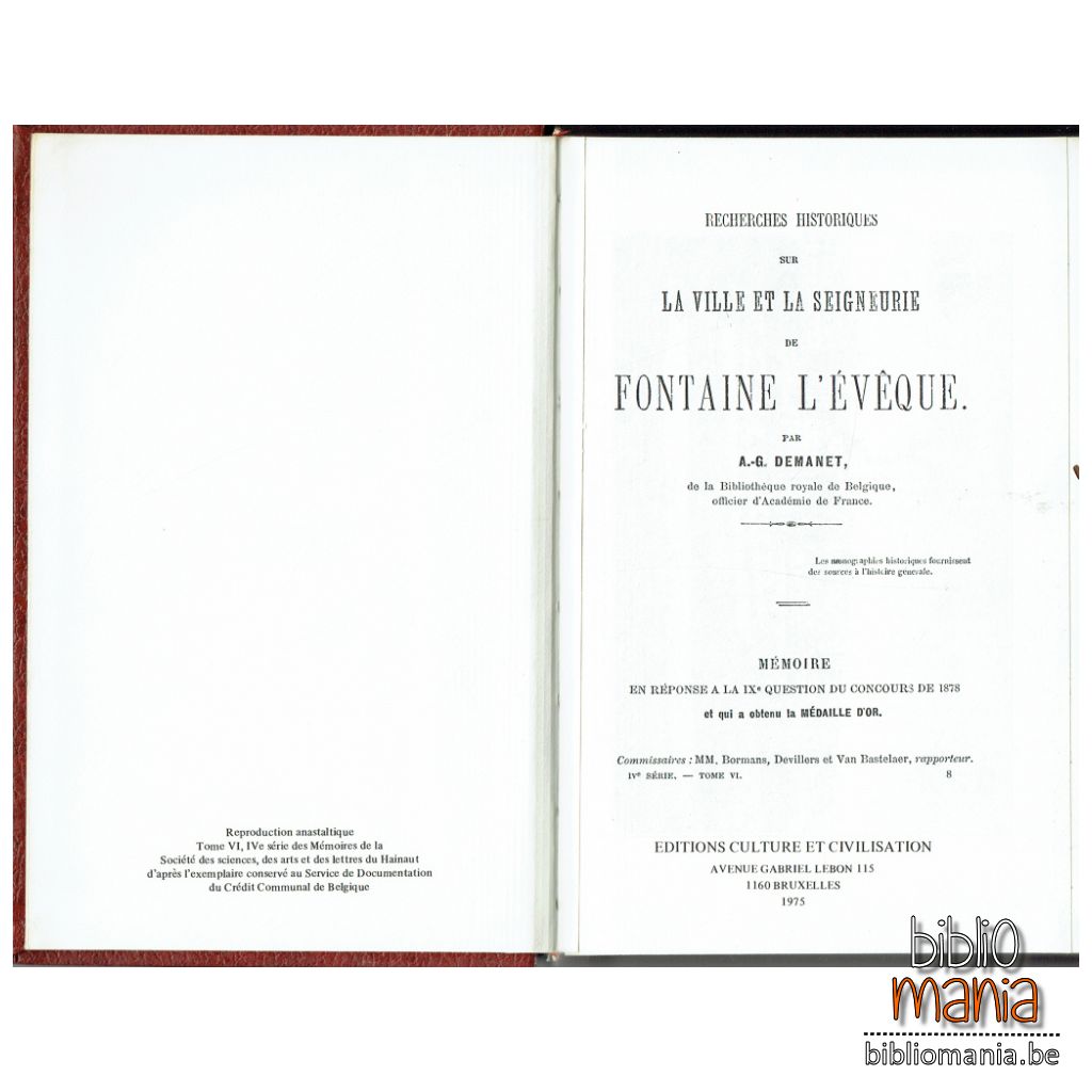 Nous divisons ce travail en trois parties dont la première comprend l’histoire politique, administrative et judiciaire de la ville de Fontaine-l’Évêque ; la majeure partie de ce chapitre n’est composée, pour ainsi dire, que du récit des contestations survenues entre les comtes de Hainaut et les princes-évêques de Liège au sujet de leurs prétentions respectives sur la souveraineté de Fontaine.