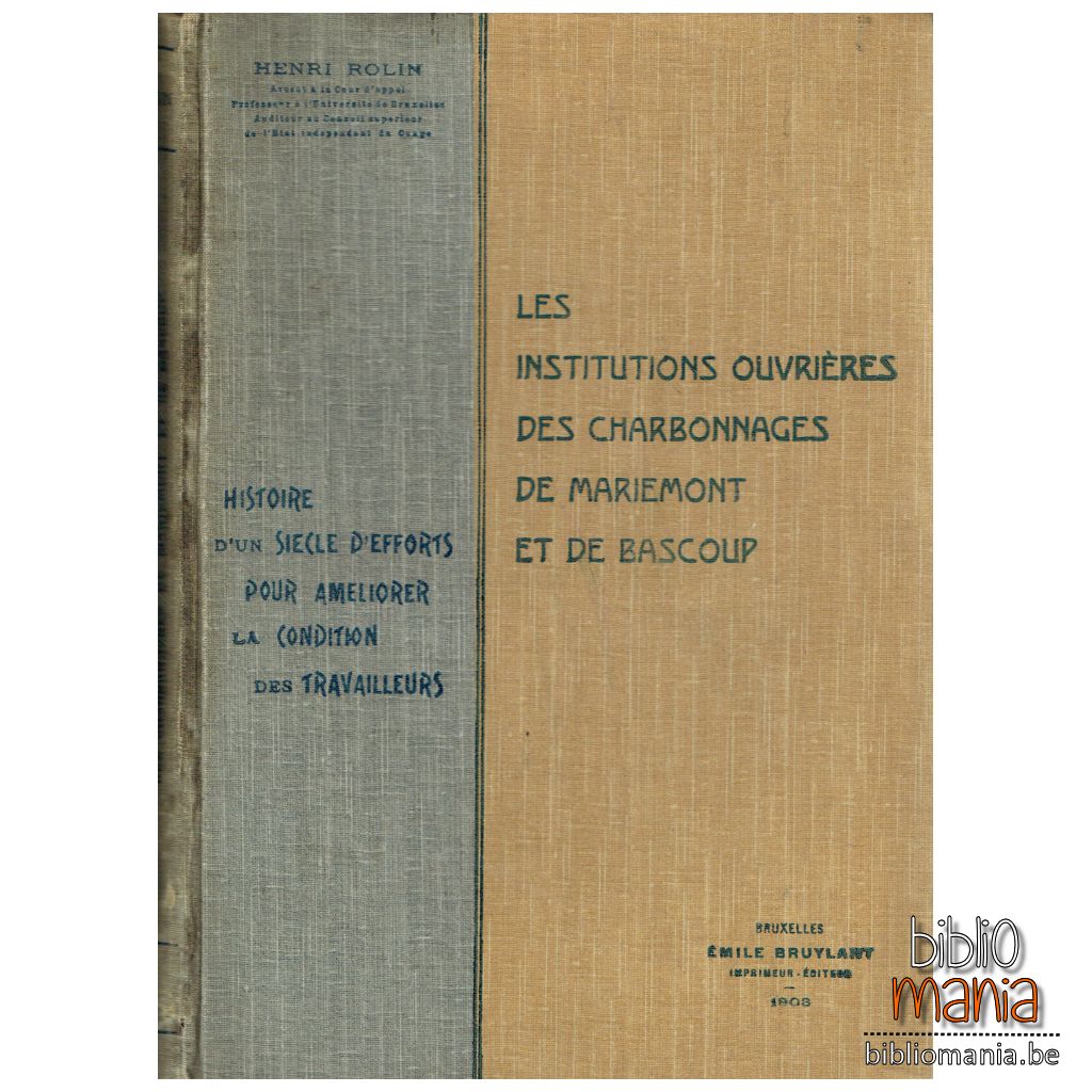 Le travail que nous mettons aujourd’hui sous les yeux du public est le fruit de l’application de la seconde méthode à l’étude d’institutions ouvrières belges particulièrement intéressantes, celles des Charbonnages de Mariemont et de Bascoup.