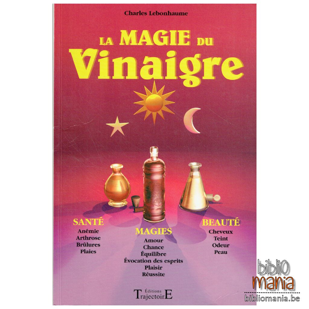 Vous allez devoir modifier votre vinaigre, à des fins magiques, dans des fioles ou des flacons de couleur, par exposition au soleil (solarisation), à l’astre lunaire (sélénisation) et au rayonnement des étoiles (stellarisation). Puis va venir le temps des rituels : 15 différents et de forte influence pour obtenir tout ce que vous voudrez.