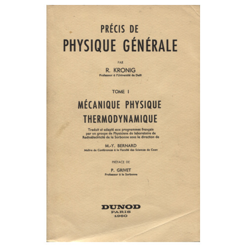 Tome I: Mécanique physique thermonynamique, traduit et adapté aux programmes français par un groupe de Physiciens du laboratoire de Radioélectricité de la Sorbonne sous la direction de M.-Y. Bernard, préface de P. Grivet. 1960, 400 pages.