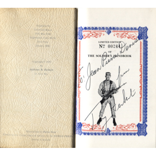 Exemplaire rare, numéroté (n° 244) et signé par l'auteur (sur la page de garde tricolore) du manuel de survie composé par le Lieutenant Colonel Anthony B. Herbert, le soldat le plus décoré d'Amérique (America's Most Decorated Soldier). Certificat d'enregistrement de l'éditeur attaché et non rempli.